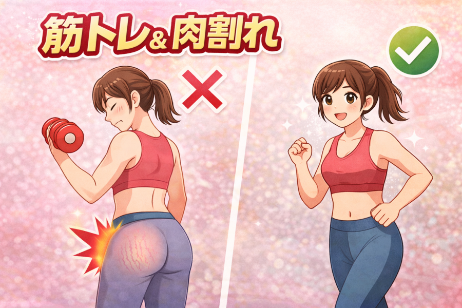 おしりの肉割れは、急激なサイズ変化で起こりやすいとされています。そのため、適度な運動で変化をコントロールすることが大切です。軽いスクワットやストレッチで筋肉を動かすと、血流がよくなり皮膚の状態も整いやすくなると言われています。ただし、急に負荷を上げるのはNG。無理のない範囲で続けるのがポイントです。