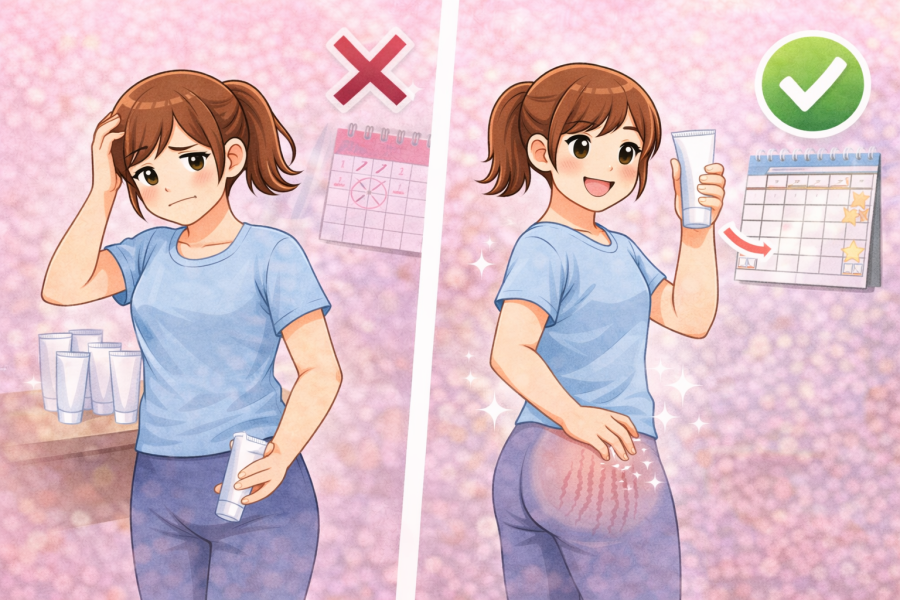 おしりの肉割れは見た目の変化が気になる分、「どれくらいで改善するの?」「何をすればいいの?」といった疑問が出やすいと言われています。結論だけでなく“リアルな目安”を知っておくことで、無駄な遠回りを防ぎやすくなると考えられています。