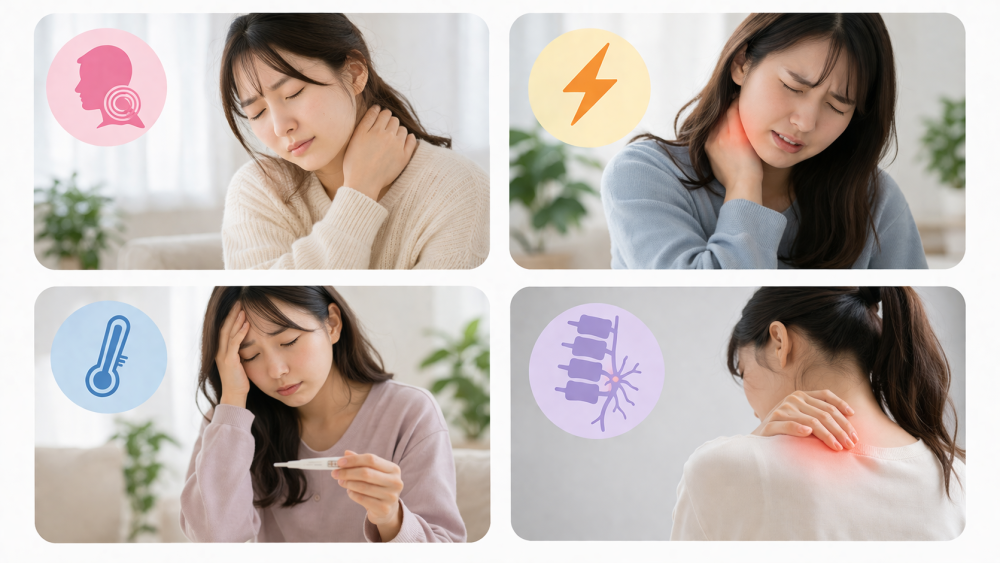 首の痛みはよくある不調のひとつですが、中には注意が必要なサインが隠れている場合もあると考えられています。特にホルモンの影響によるものなのか、それとも別の原因なのかを見分けることが、不安を減らすポイントになります。