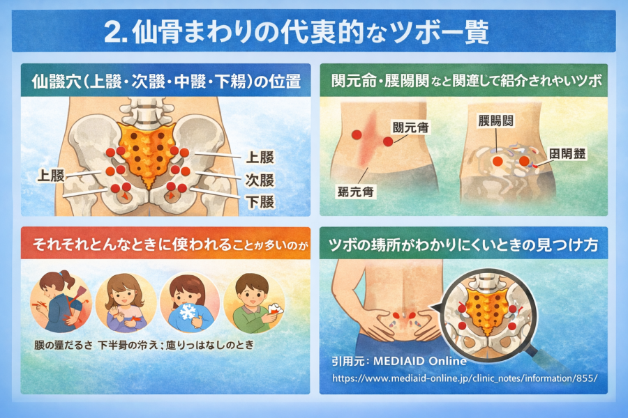 2. 仙骨まわりの代表的なツボ一覧