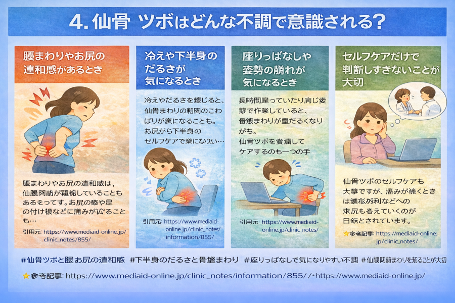 4. 仙骨 ツボはどんな不調で意識される?
