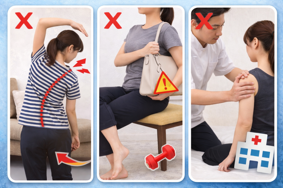 こう思いがちなんですが、実はやっていることが逆効果になっているケースもあると言われています。どれだけストレッチや運動を頑張っていても、日常のNG習慣が残っていると、バランスは崩れたままになりやすいです。特に無意識のクセは自覚しづらいため、「何をやるか」と同じくらい「何をやめるか」も重要だと考えられています。ここでは見落とされがちな注意点を整理していきます。