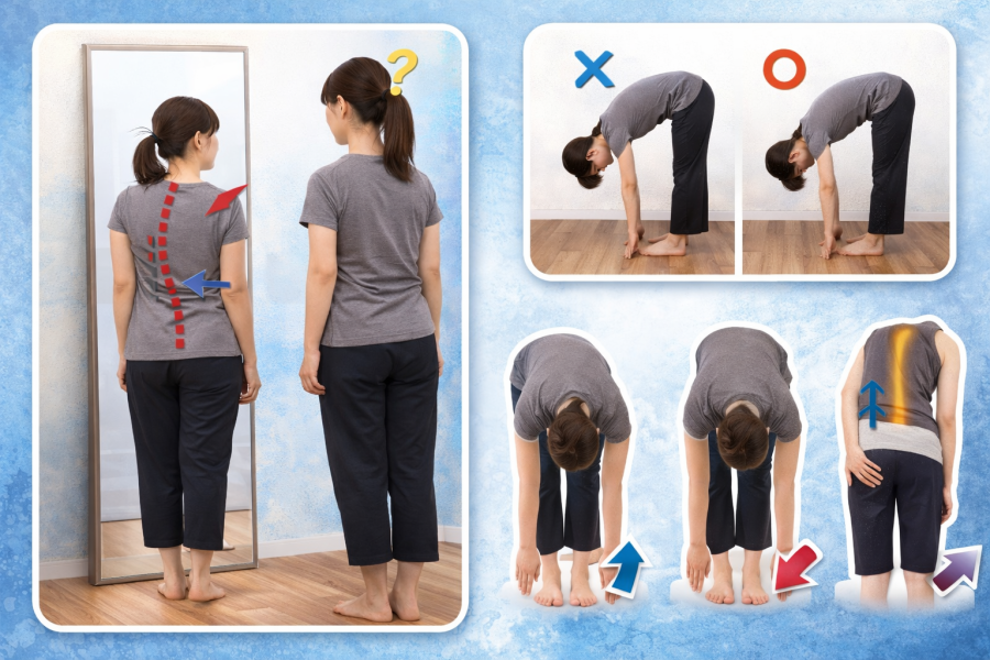 体の歪みは、動いたときの違和感として現れることも多いと言われています。例えば前屈や後屈をしたときに、左右で動かしやすさが違う場合は、筋肉のバランスに差がある可能性があります。また、片足立ちをしたときにふらつきやすい側がある場合も、体の軸が安定していないサインと考えられています。こうしたチェックはシンプルですが、意外と気づきが多いポイントです。