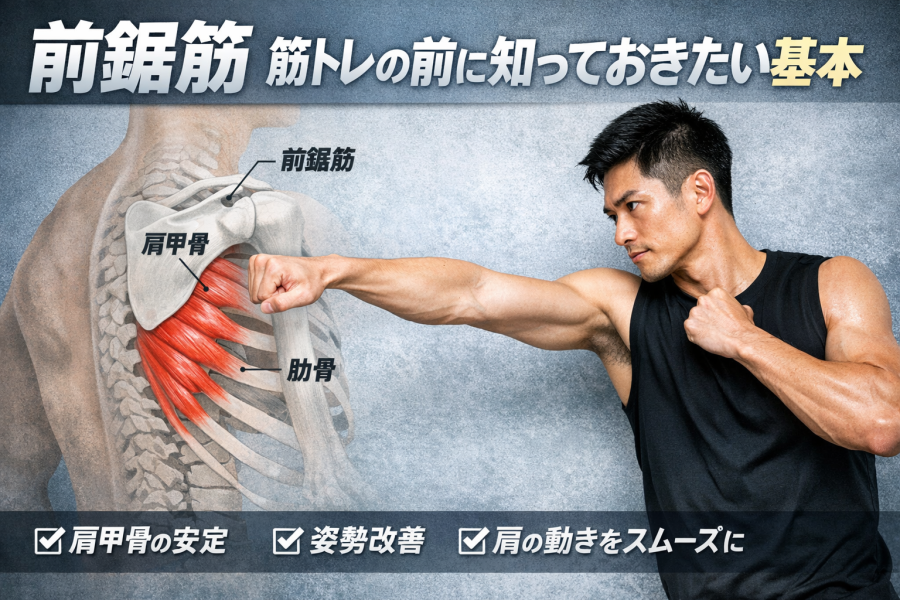 前鋸筋 筋トレのやり方を知りたい方へ。前鋸筋の役割や鍛えるメリット、初心者でも取り組みやすいトレーニング方法、フォームの注意点までわかりやすく解説します。肩甲骨の安定や姿勢づくりを意識したい方は参考にしてください。