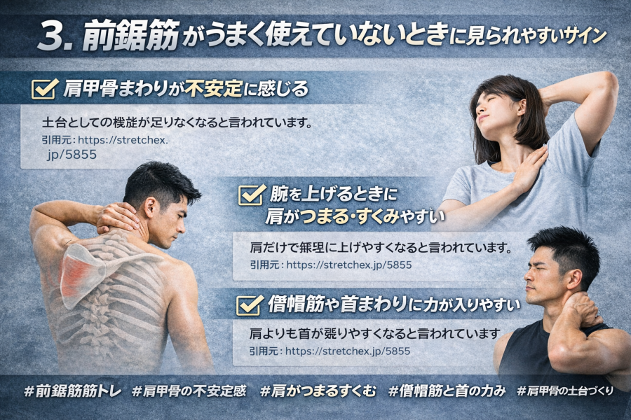 3. 前鋸筋がうまく使えていないときに見られやすいサイン