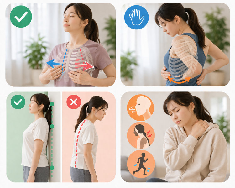 ここでは、自宅でできるチェック方法をわかりやすく紹介していきます。呼吸と姿勢のチェックガイド