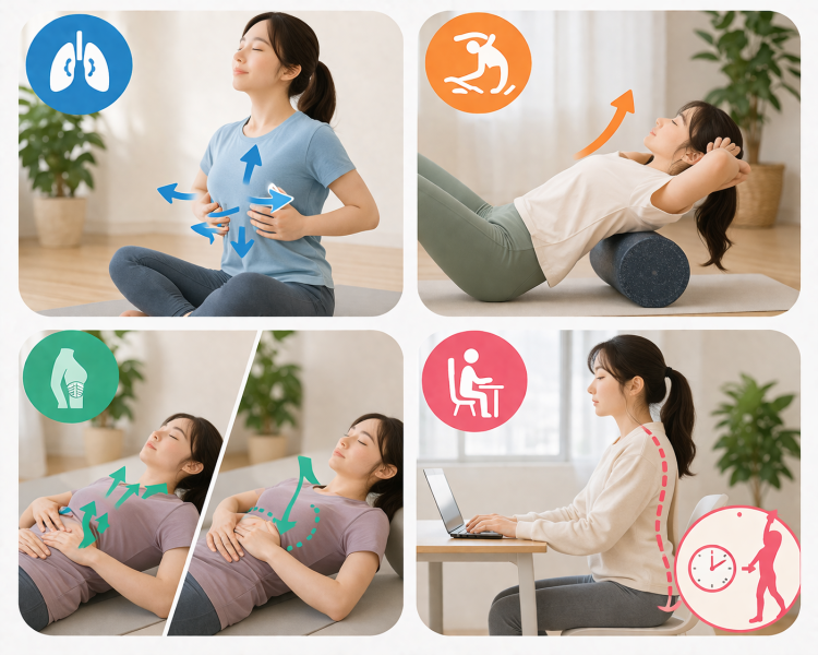 ここでは、今日からできる具体的な方法を紹介していきます。呼吸と姿勢のストレッチガイド