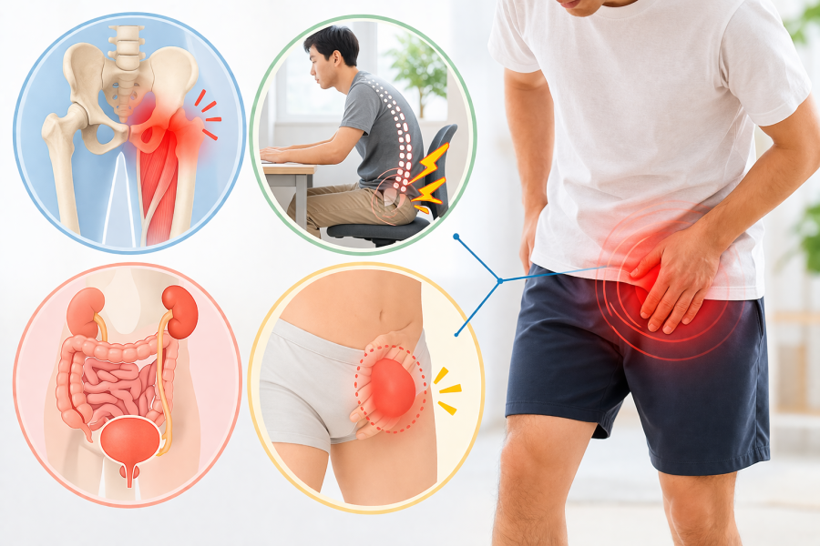 例えば腸や泌尿器系などの不調でも、鼠径部に違和感として現れることがあります。動きと関係なく痛む場合は、慎重に見ていく必要があります。