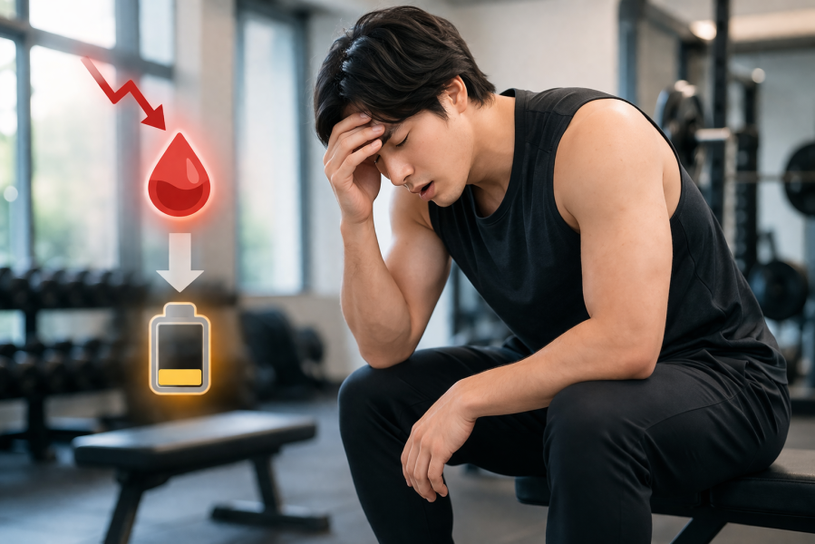 筋トレ 低血糖でフラフラ・めまいが起きる原因とは?本記事では低血糖が起きる理由、今すぐできる対処法、予防の食事タイミング、危険な症状の見分け方までわかりやすく解説します。