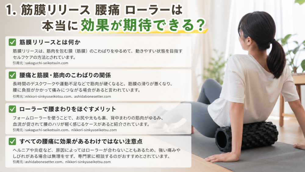 1. 筋膜リリース 腰痛 ローラーは本当に効果が期待できる?