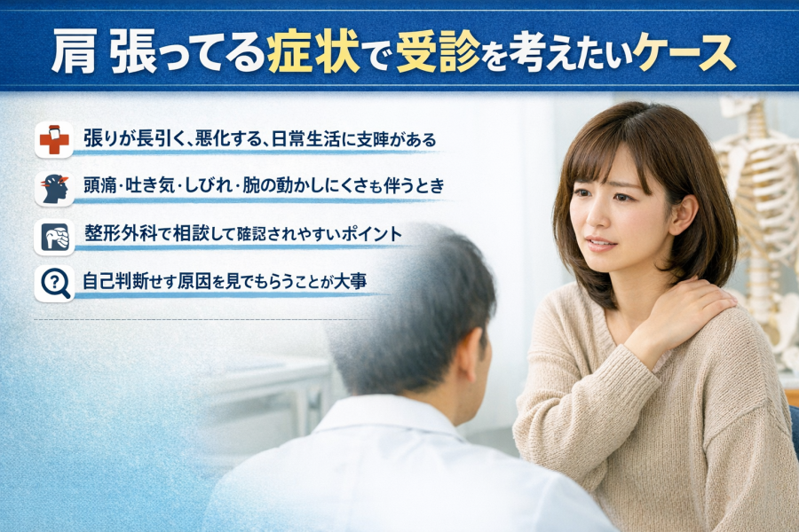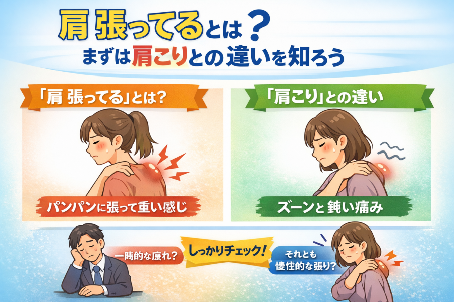 肩 張ってると感じるのはなぜ?肩こりとの違い、考えられる原因、今すぐできるストレッチや生活習慣の見直し、放置しないほうがよい症状、受診の目安までわかりやすく解説します。