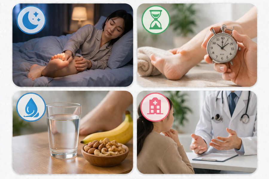 足の指がつる原因の多くは水分不足や筋疲労ですが、場合によっては体の不調が関係しているケースもあると言われています。特に「何度も繰り返す」「違和感が残る」といった場合は、一度状態を見直すことが大切とされています。