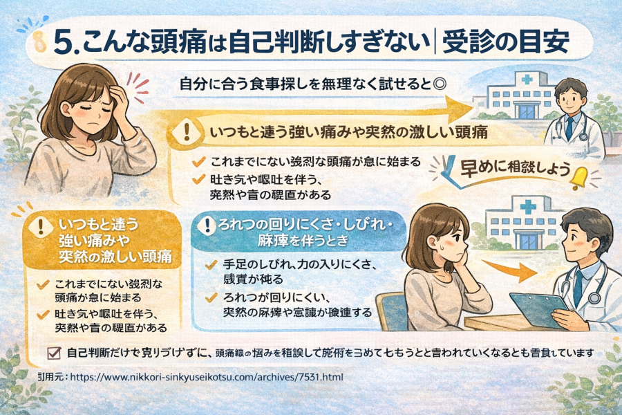 5. こんな頭痛は自己判断しすぎない|来院の目安