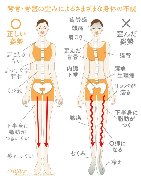 姿勢の乱れが体に与える影響(腰痛・肩こりなど)
